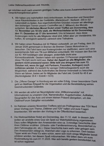 Zusammenfassung unseres Clubtreffens vom 08. Oktober 2025