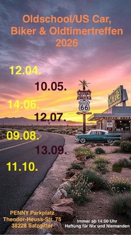 14. Juni 2026 US-Car, Biker & Oldtimertreffen in Salzgitter- Lebenstedt (Fredenberg), Penny Parkplatz, Th- Heuss-Str. ab 14 Uhr